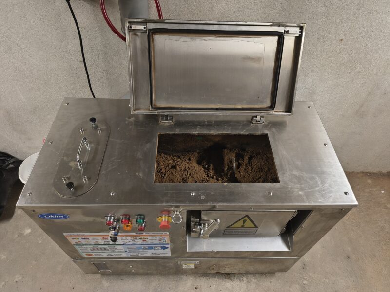 Momentálně kompostér spotřebuje 5kW denně, což vychází na 8 000 Kč ročně. Zatím tedy panuje s kompostérem velká spokojenost.