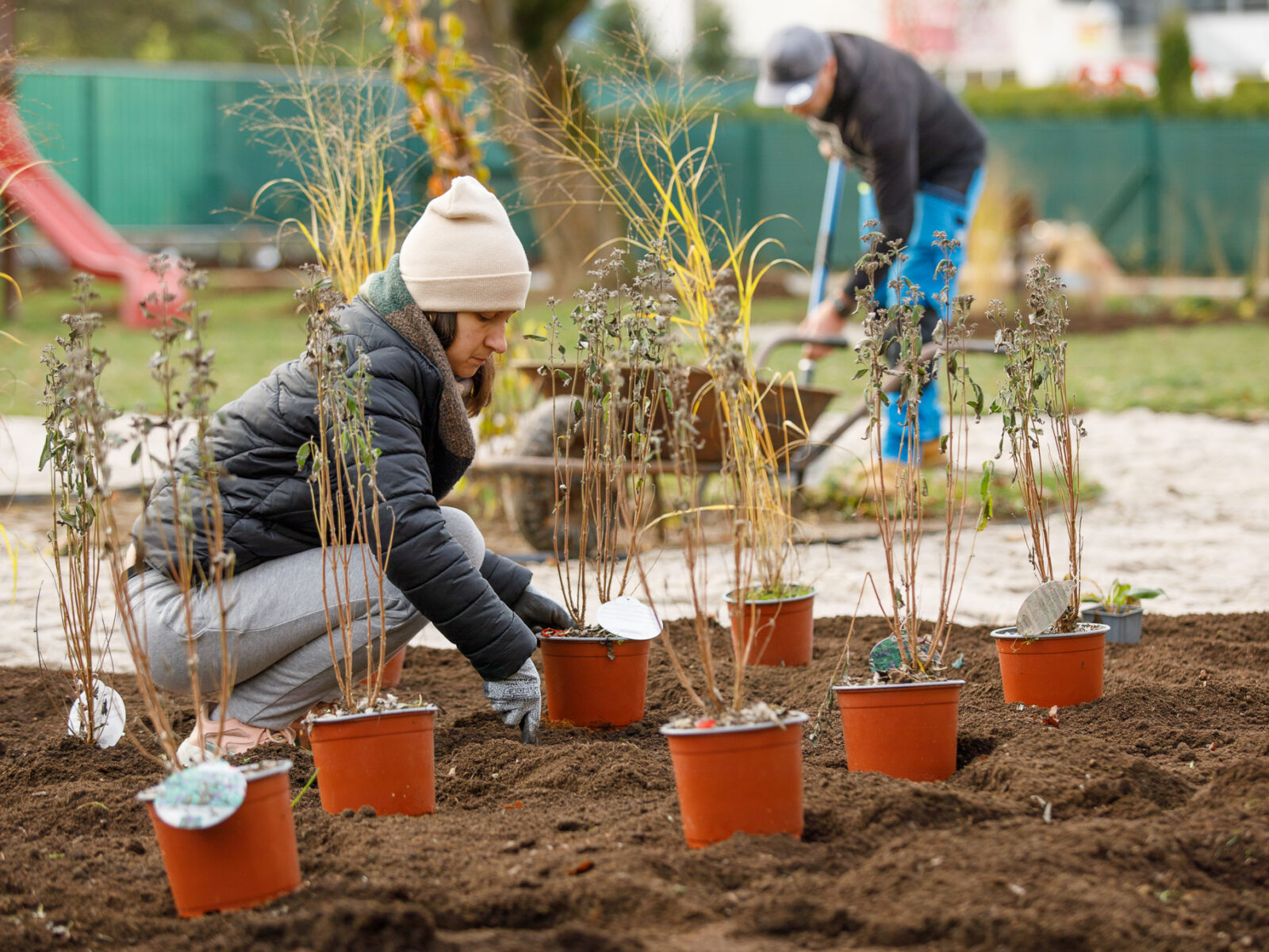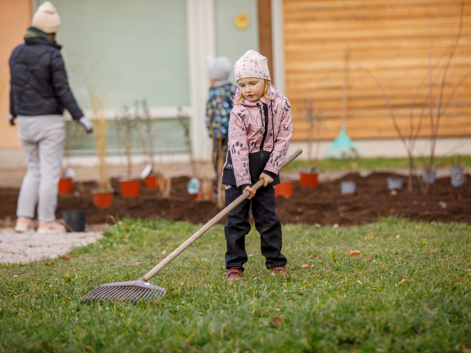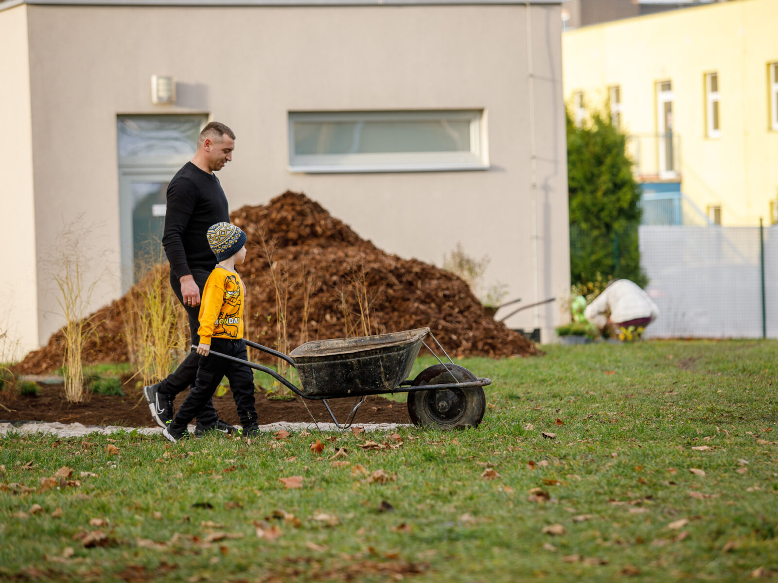 Se zahradou pomáhají rodiče a dobrovolníci. Doprovodné fotografie jsou ze společné brigády, kde vypomáhali rodiče dětí ze školky z listopadu 2025.