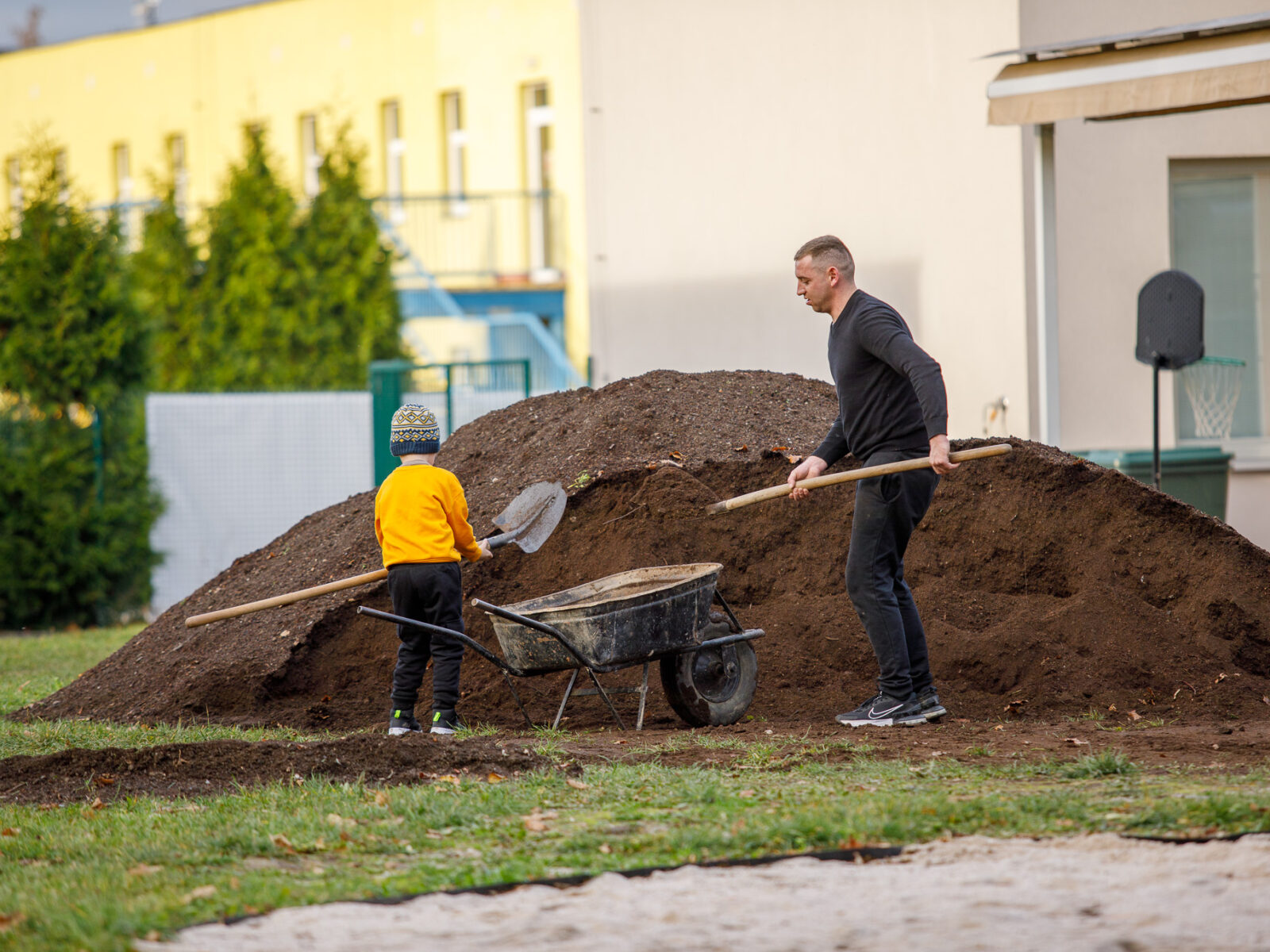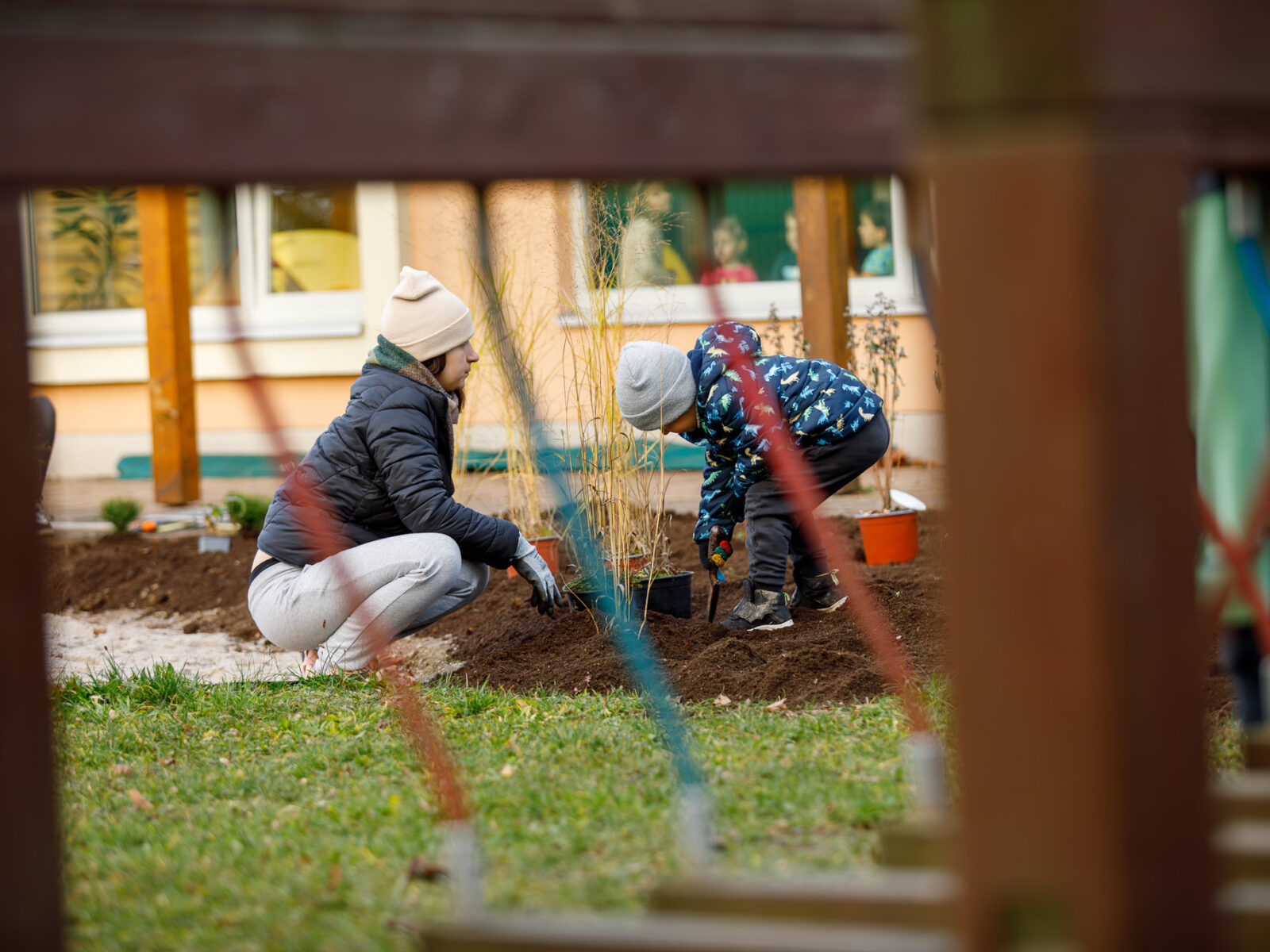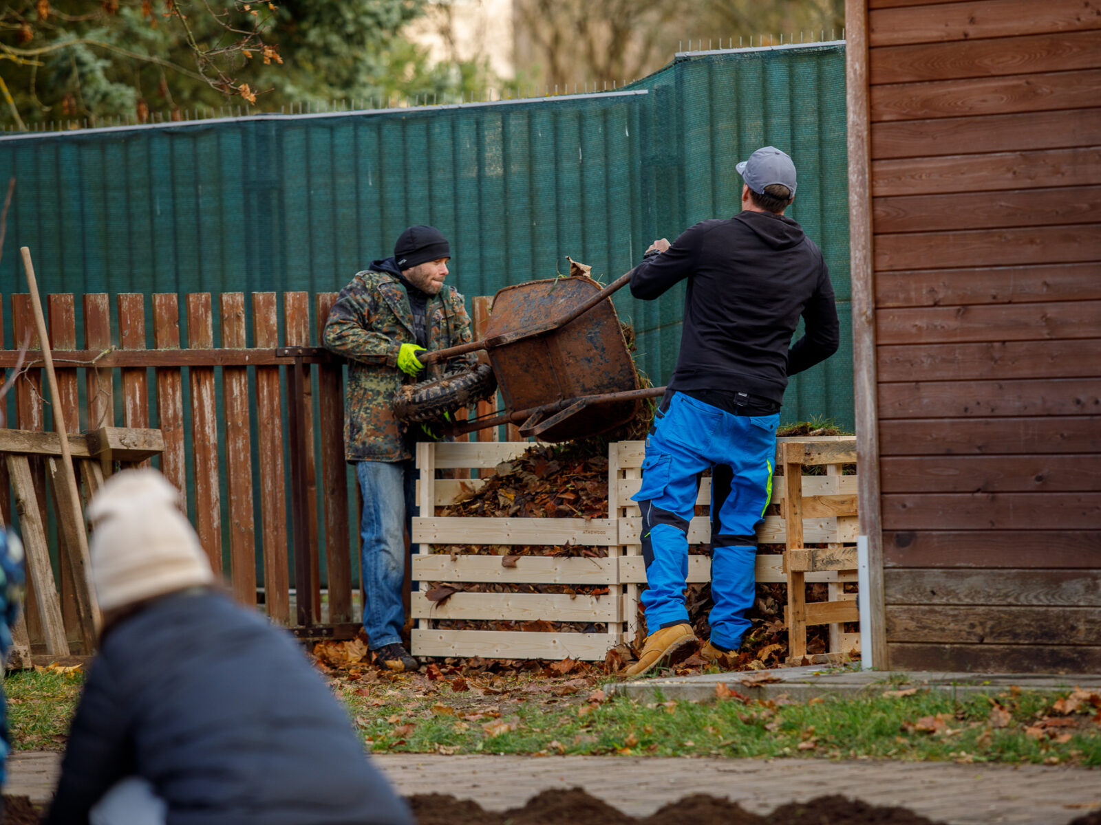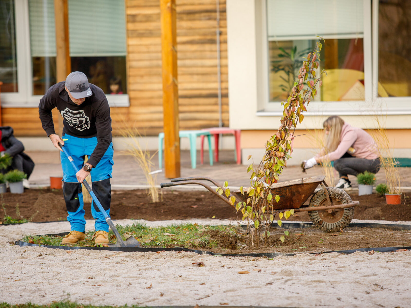 Se zahradou pomáhají rodiče a dobrovolníci. Doprovodné fotografie jsou ze společné brigády, kde vypomáhali rodiče dětí ze školky z listopadu 2025.